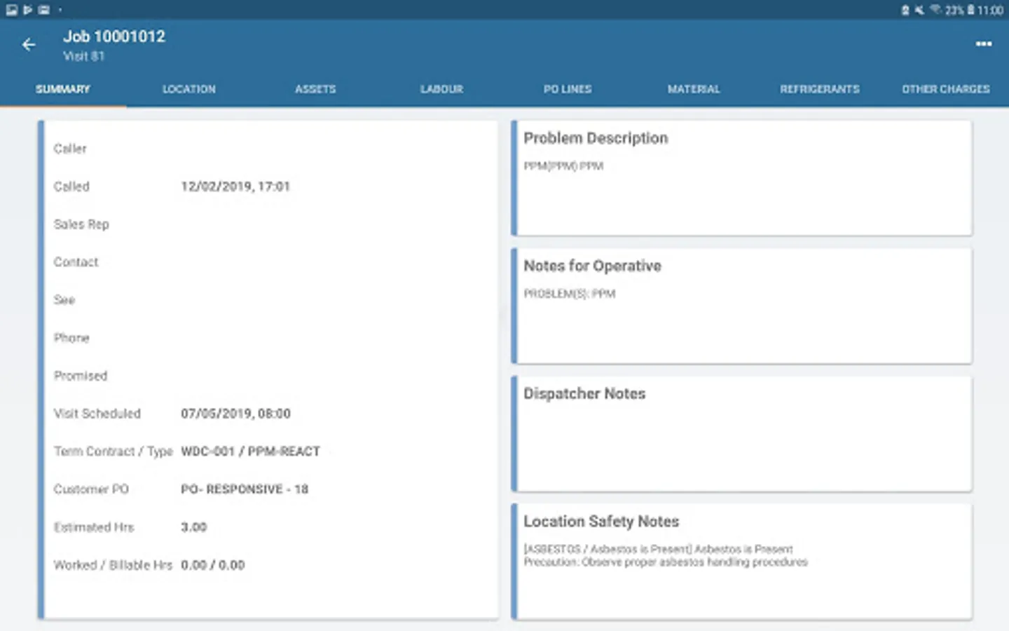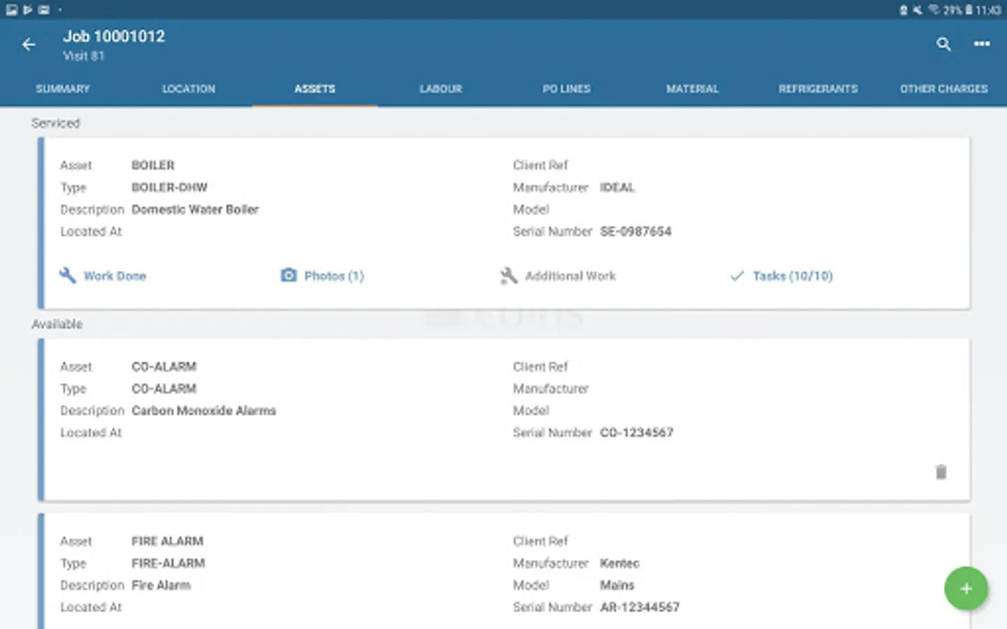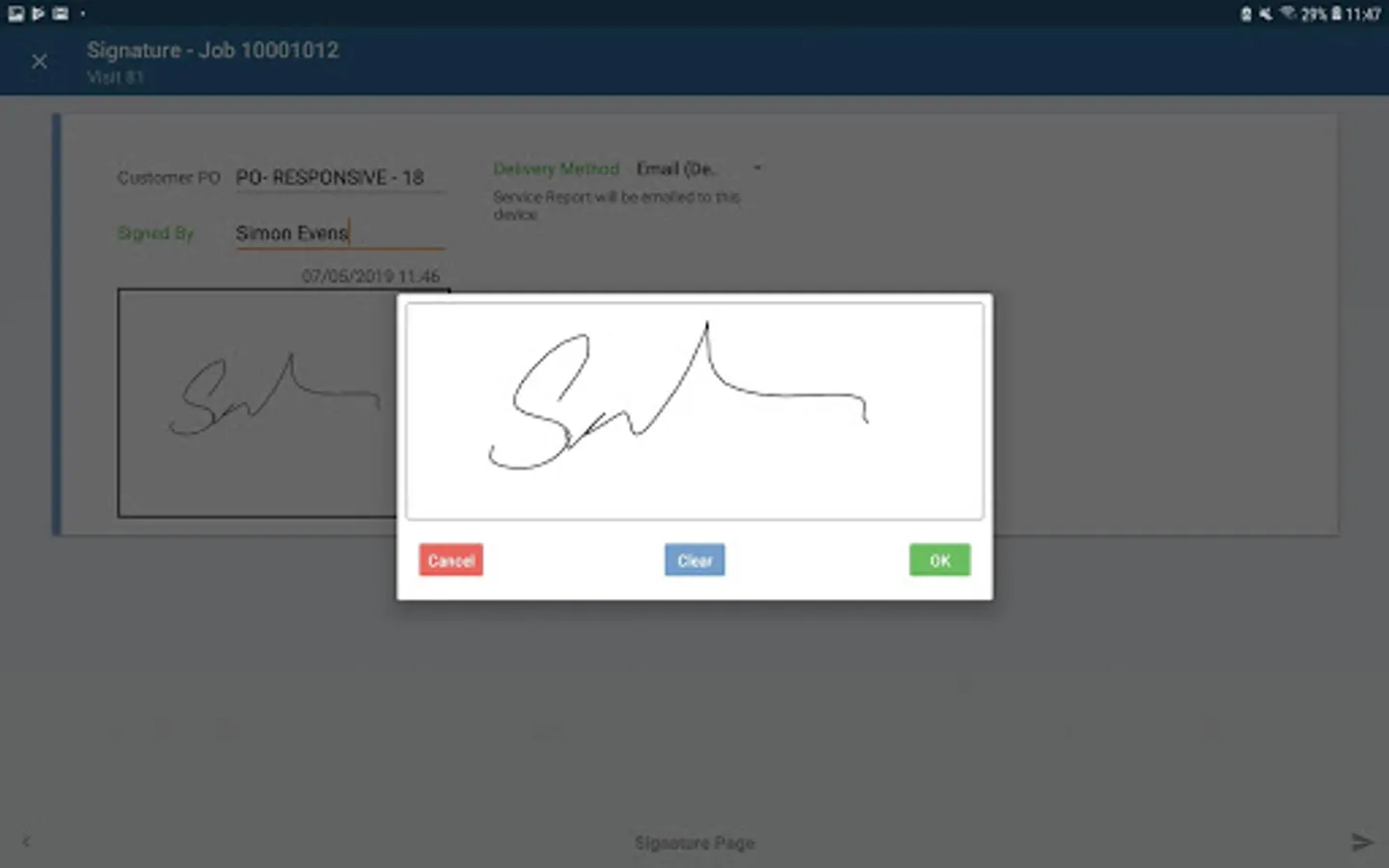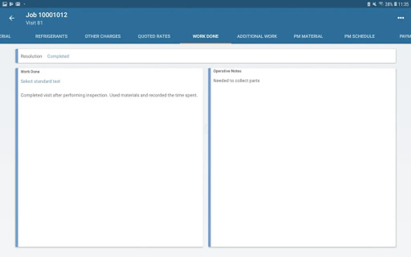 • In areas with poor connectivity, technicians can still perform their duties by entering visit details, work done and capturing customer signatures.