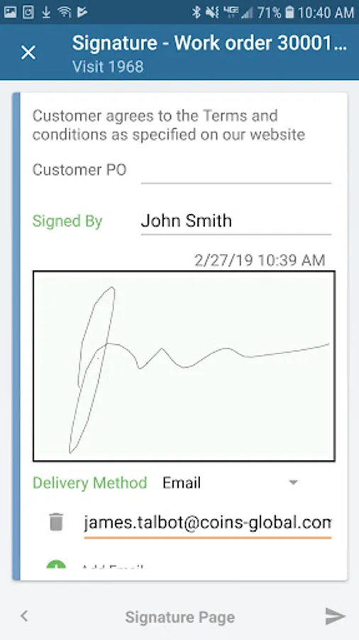 • Get the customer’s signature for immediate signoff and proof of work performed and avoid future invoice disputes.