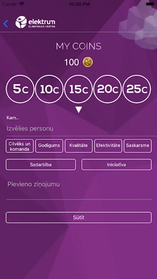 Šī lietotne ir radīta, lai Elektrum Olimpiskā centra darbinieki varētu sazināties, viens otram pateikt paldies. Izsaki atzinību par kolēģa atsaucību, izpalīdzēšanu, atbalstu vai padomu, nosūtot viņam Olimpiskās zvaigznes. Papildu funkcija ļauj aplikācijā palūgt kolēģiem kādu pakalpojumu vai palīdzību. Katra zvaigzne, ko nosūtīsi summēsies, apliecinot koleģiālākā darba biedra statusu.