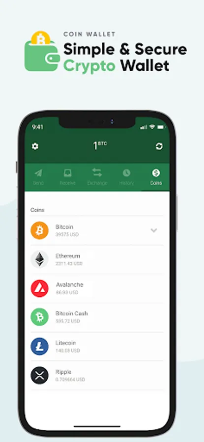 The Coin Wallet is easy for everyone, from crypto wallet beginners to seasoned bitcoin wallet experts. You'll see how easy it is to exchange, sell, and buy any cryptocurrency in your bitcoin wallet. Buy & Sell Bitcoin (BTC), Ethereum (ETH), Litecoin (LTC), Solana (SOL), Avalanche (AVAX), Cardano (ADA) and more crypto coins with ease!