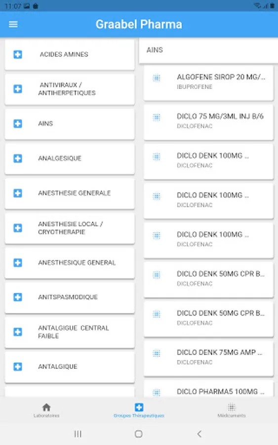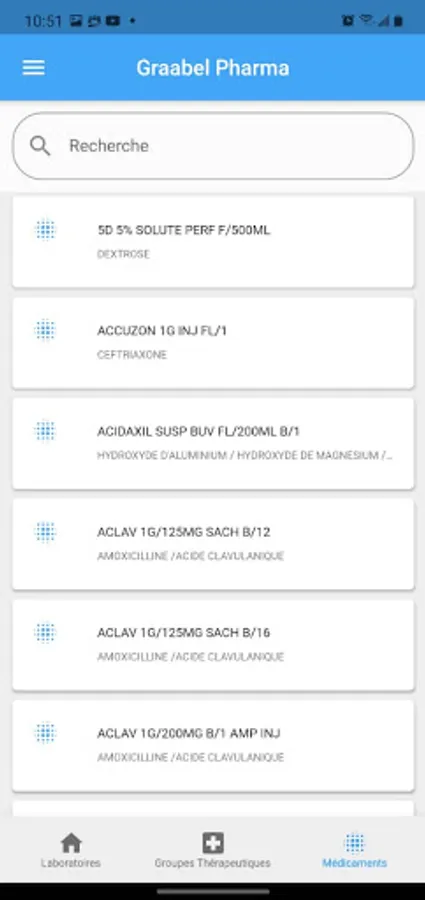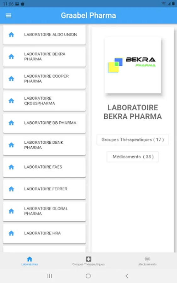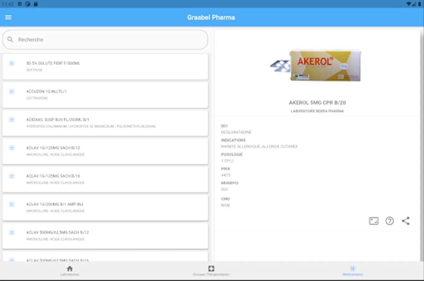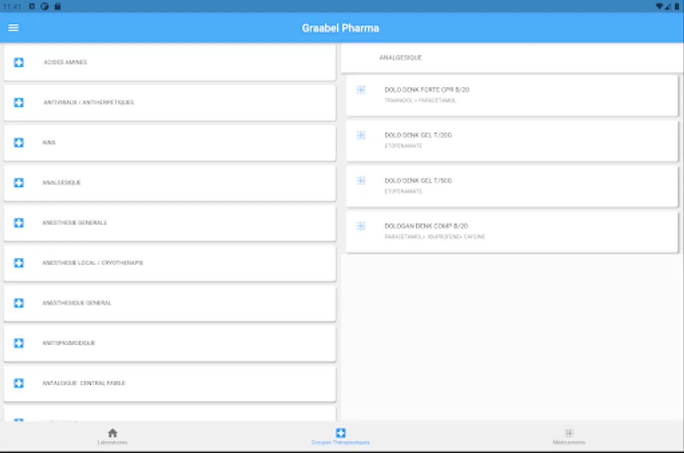 The GraabelPharma application of the Graabel Pharma group gives you access to the list of all affiliated laboratories and their pharmaceutical products, with details concerning: