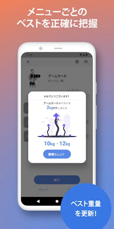 If you have a muscle training that exceeds the maximum weight, we will inform you how many kilograms have reached the maximum weight and how many kilograms have been updated.