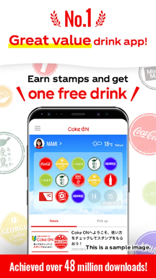 We have many exclusive campaigns for Coke ON users, such as Coke ON Walk (You can get Coke ON stamps, just walking.), double stamp campaign, free drink ticket campaign and more!