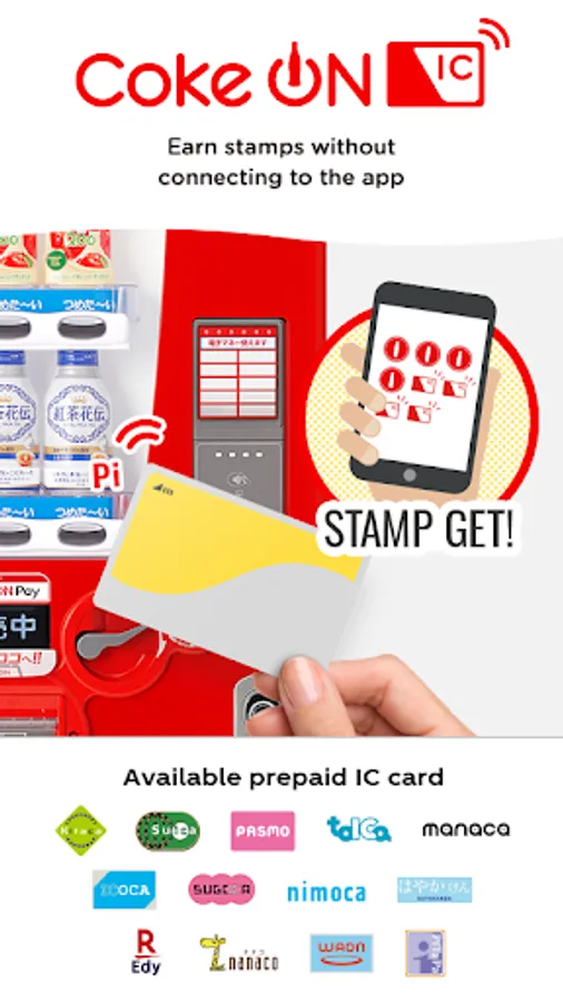 Collect stamp with Coke ON compatible vending machines and get a free drink ticket when you collect 15 stamps.