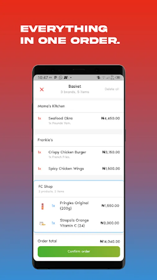 On the FoodCourt app, your friends and family get their favorite meal and you can checkout these varieties of delicacies in one single order! Place orders for chinese rice, burger, jollof rice, pounded yam and checkout with this variety and have them all delivered to your doorstep in minutes!