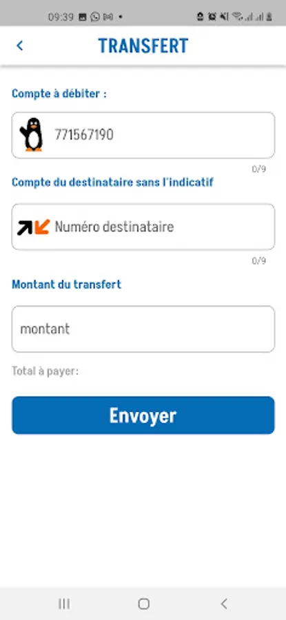Tariff of 4% +10 FCFA if amount < 5000 FCFA