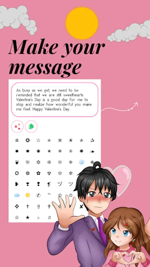 ♥ With a single click you can choose what you need from a large offline database (Internet not required) of romantic messages to share with your loved ones.