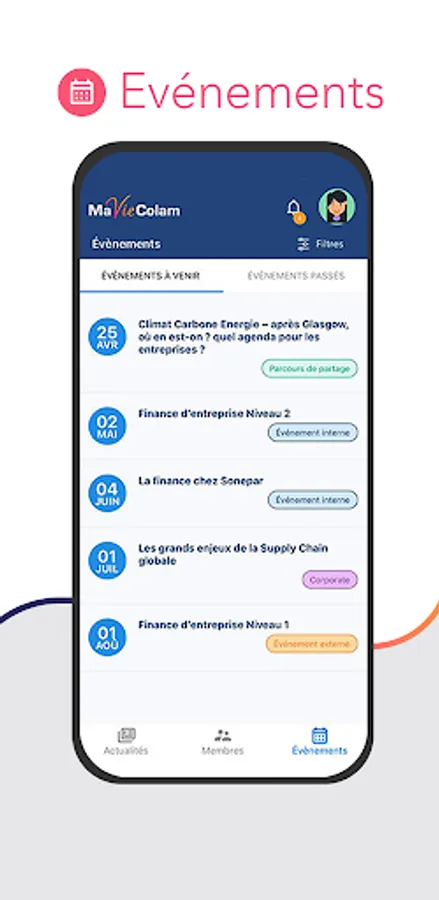 the new MaVieColam application will give you easy access to news, the directory and events from the Colam offer... and that's just the beginning!