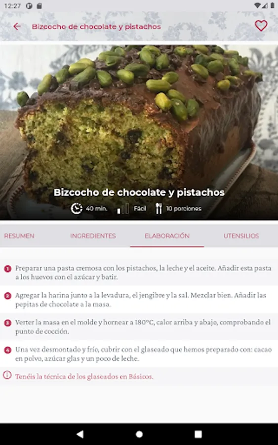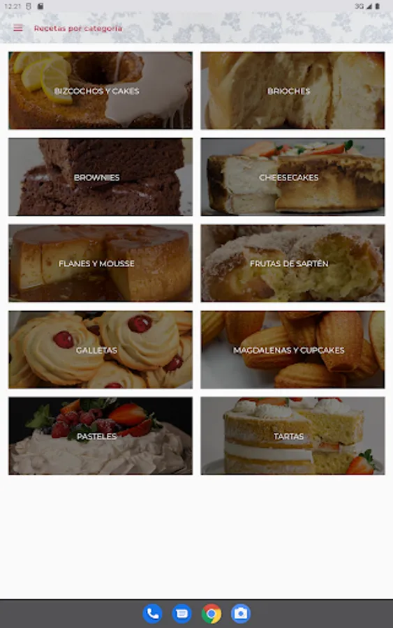 The app includes different categories where you can find the perfect recipe: sponge cakes, brioches, brownies, cheesecakes, flans and mousse, pan fruits, cookies, muffins and cupcakes, cakes and tarts. A wide variety of exclusive recipes that you can prepare at home and will take you directly to the workshop.
