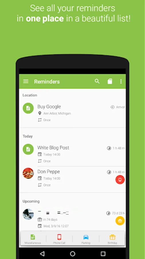 Just set up a calling reminder and the program will notifiy you exactly about the appointment - just one finger tap and the call will be transferred automatically.