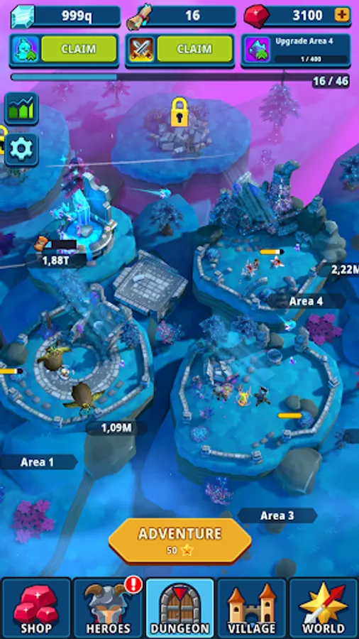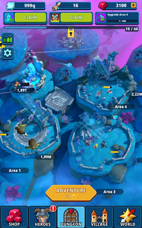 Send a group of up to five Heroes against other players in the new leaderboard based PvP arena tower. Fight to the top of the league and get worthy rewards that help your heroes to get even stronger. So don’t be afk and fight bravely in the arena.