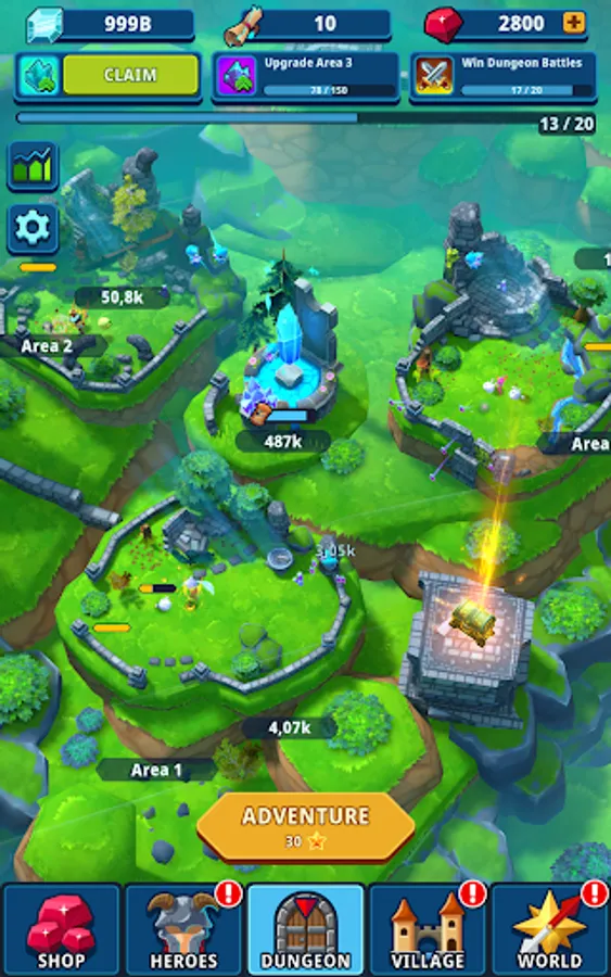 Monsters continuously attack the nearby villages. Besides exploring new dungeons you also have to protect them. Test your skills in the village siege mode and earn experience points needed to level up your heroes.