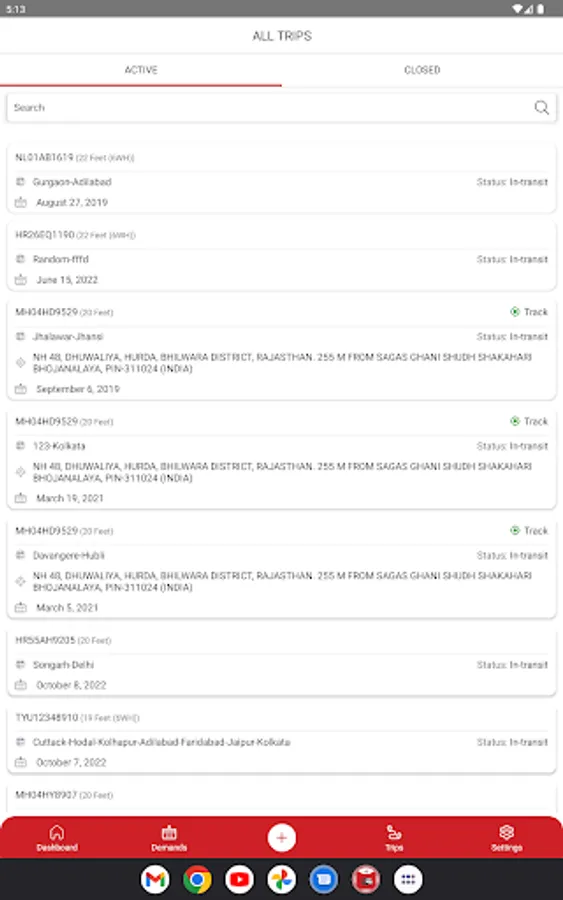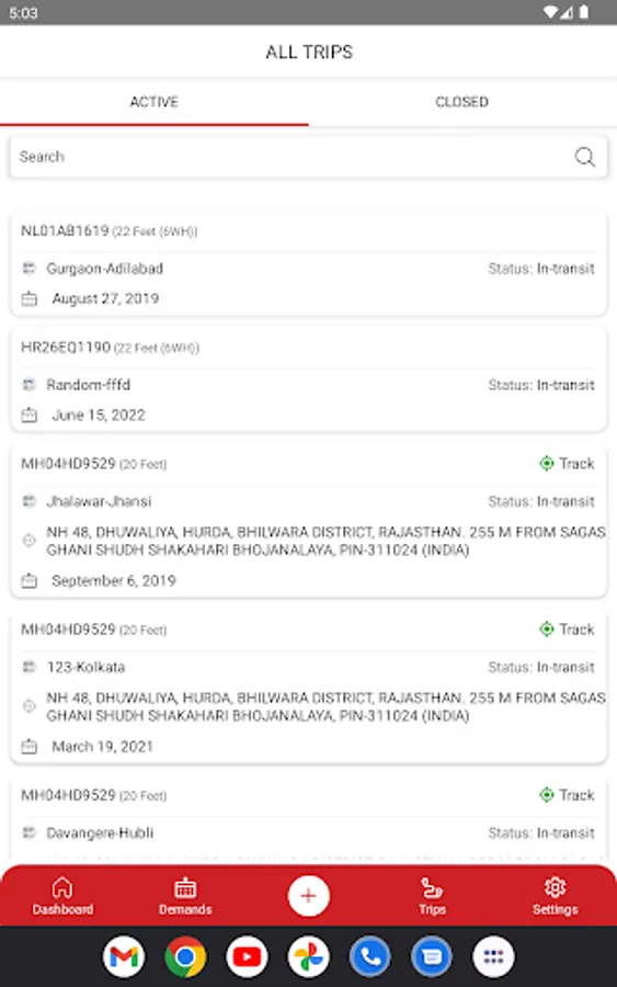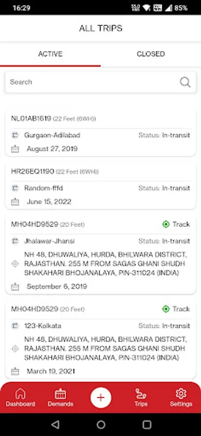 Apart from current vehicle tracking Customers can track the history of their active and closed trips.