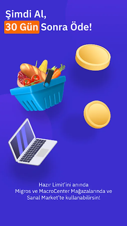 With MoneyPay, you can do your grocery shopping at the speed of light with the QR code at all Migros and Macrocenter stores, and with your MoneyPay wallet at Migros Virtual Market and Migros Immediately. Moreover, you can do your grocery shopping instantly with your special Ready Limit, and delay your payment for 30 days without any cost! Don't forget, your specially defined Preset Limit will increase as you use it and pay back!