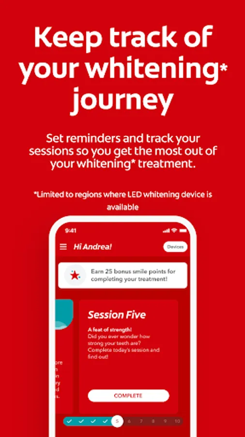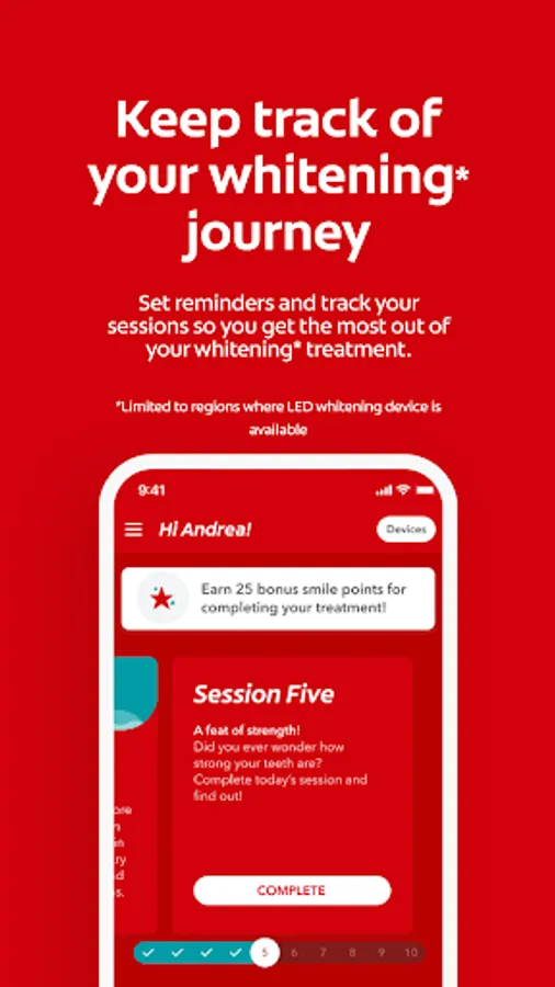 -Transform how you whiten your smile! Get the most out of your whitening LED treatment with our Colgate app. With our app, you can set daily reminders to whiten, track your sessions and get whitening tips while earning smile points redeemable for Colgate products. Enjoy your whiter smile!