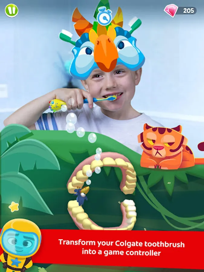 -Augmented Reality Games: Using your toothbrush connector you can turn brushing into a game. By following the brushing guidance in each level of the app you can defeat cavity monsters and win augmented reality masks as prizes.