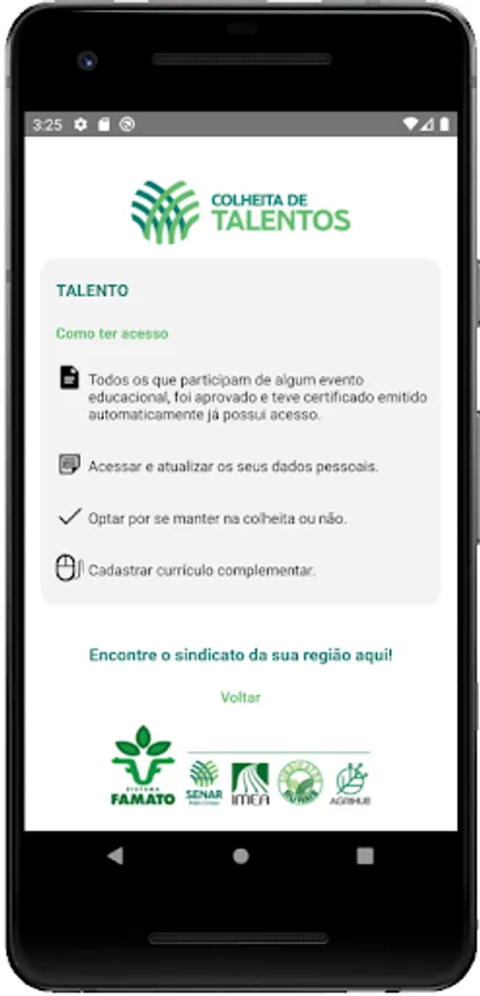 Colheita de Talentos is an application developed by the Mato Grosso National Service for Rural Learning (Senar-MT) to connect students trained by the entity to rural and urban opportunities.