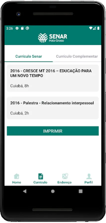 · Senar-MT student, as soon as he completes a course or training, being approved and with a certificate issued, he automatically has his profile created in the application;
