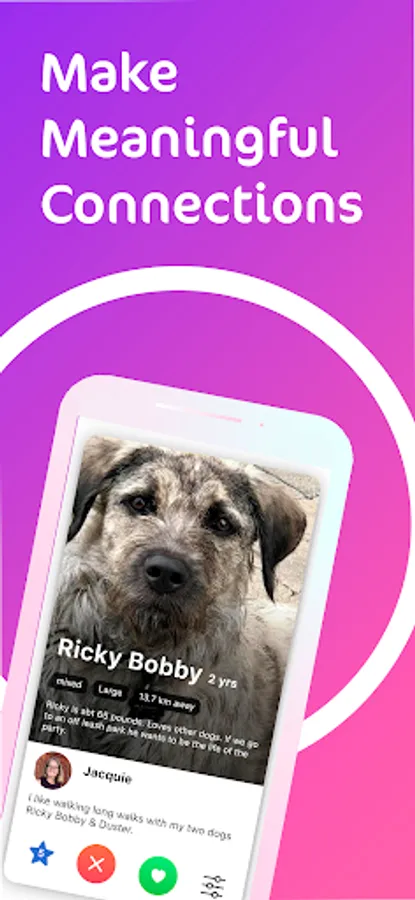 Unlimited free browsing of the cutest dogs in your area! Change your settings to specify the types of dogs and people you want to meet! Find your gang!