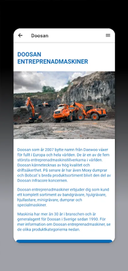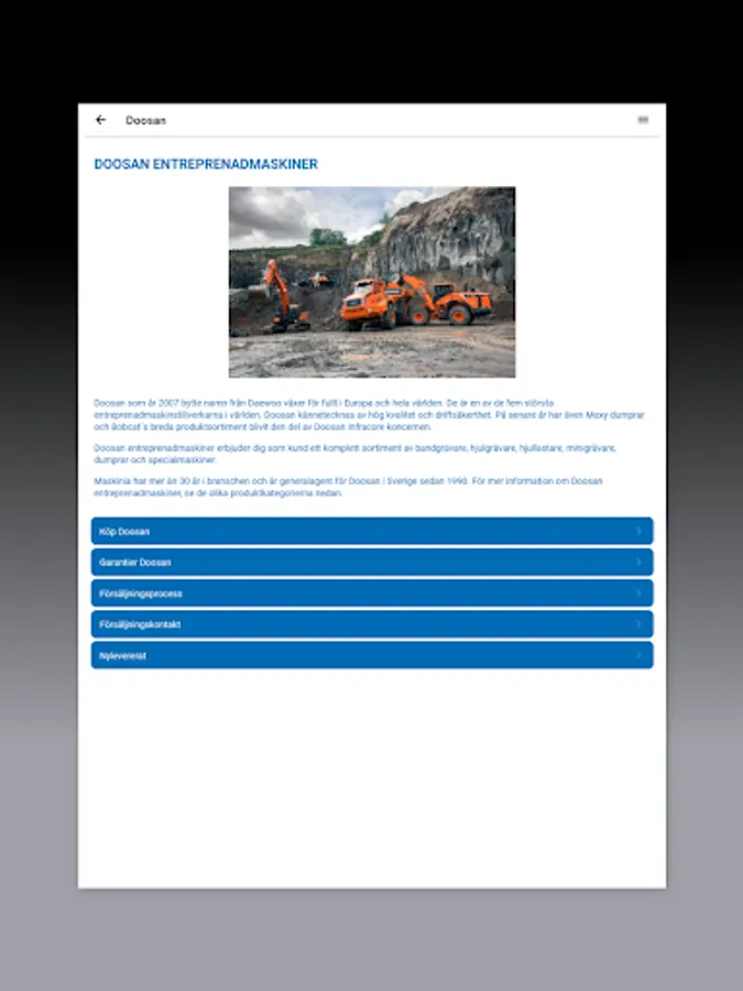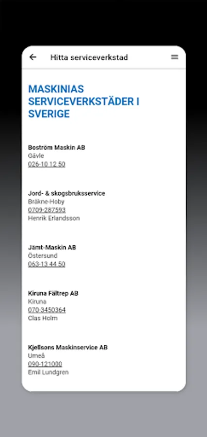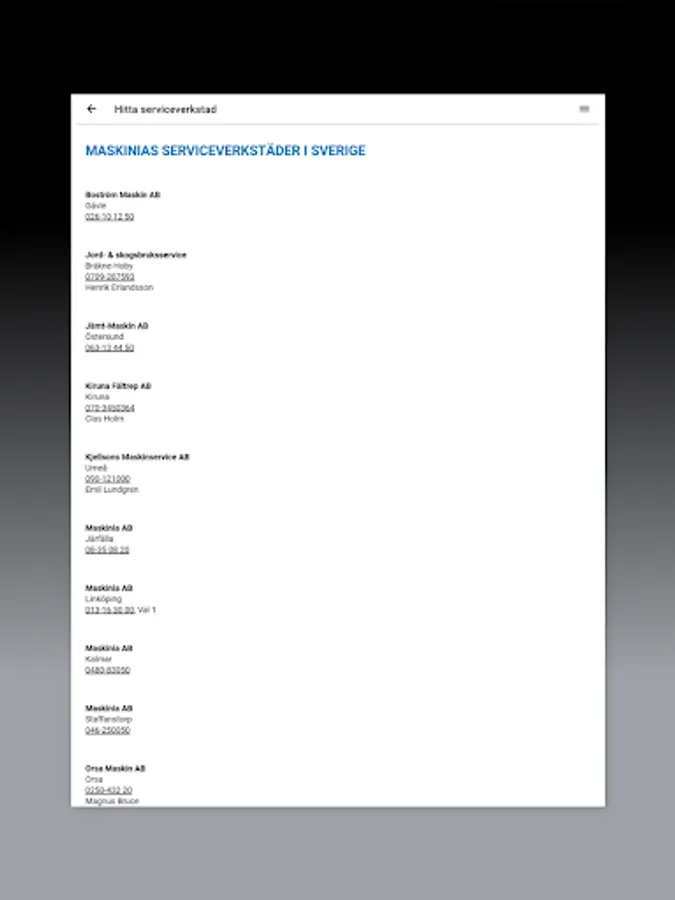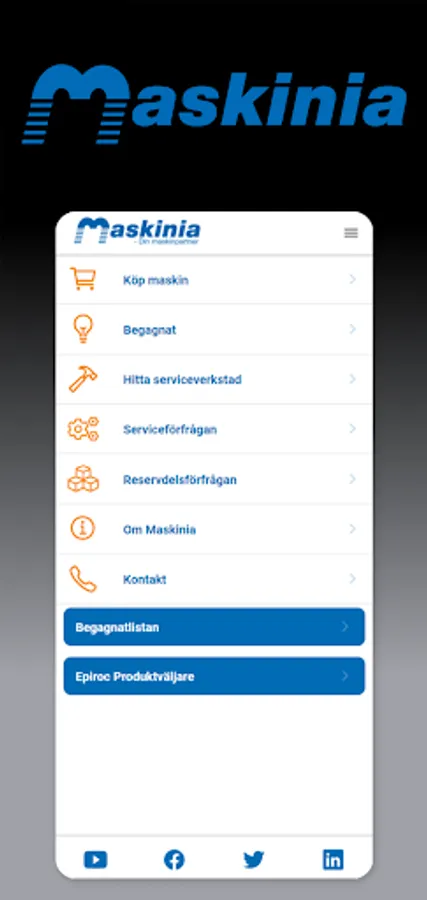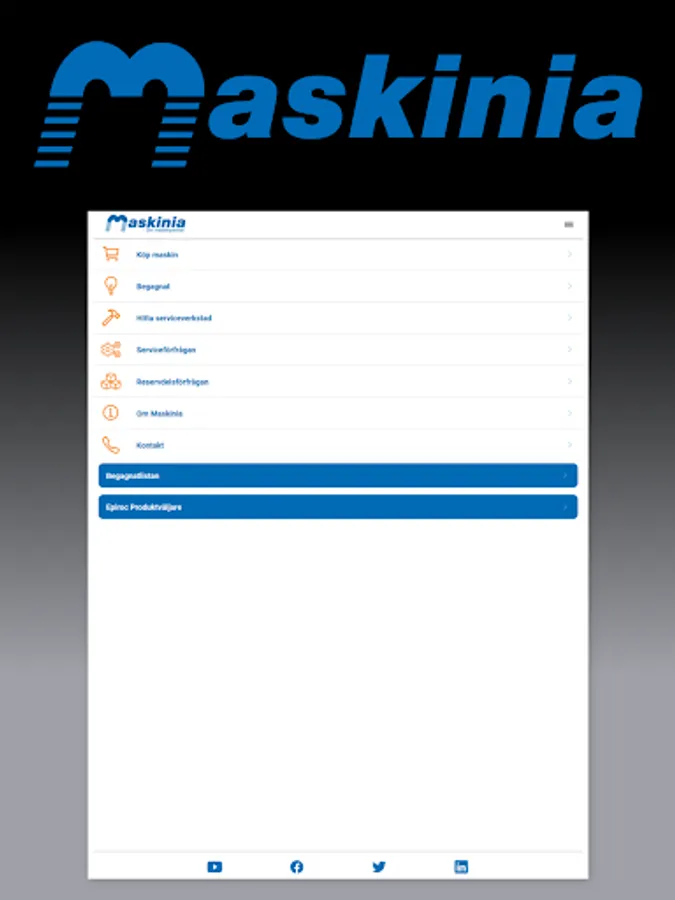 Maskinia's app with info about our machines, used, service and contact information.