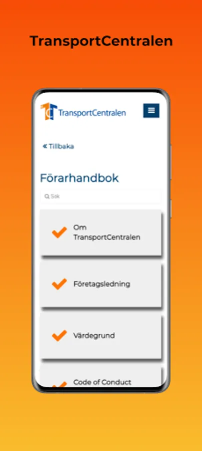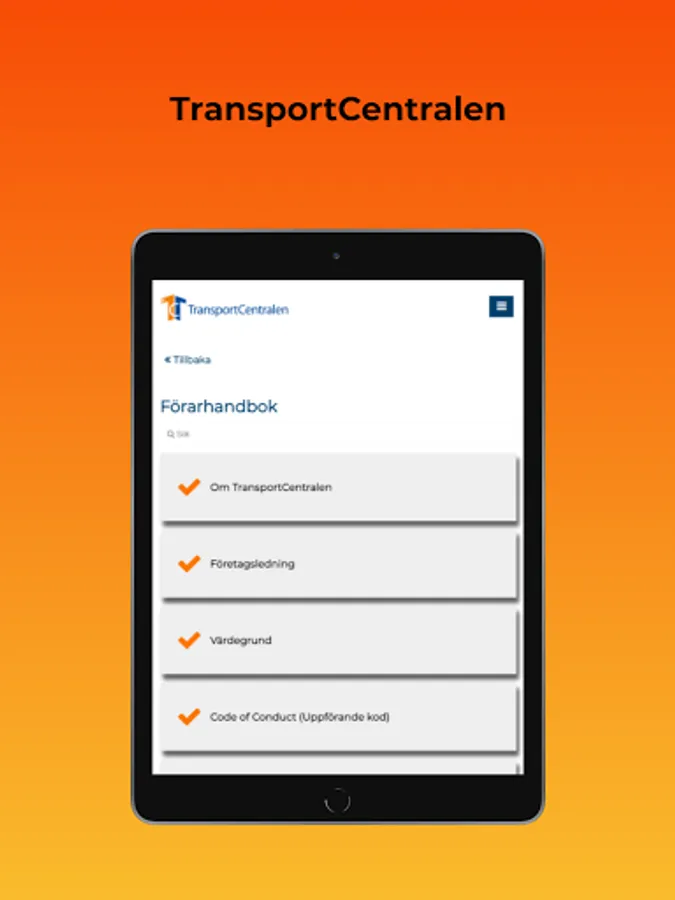 TransportCentralen's app is used as a tool for our affiliated transport companies and partners to quickly and easily access information needed in daily work. The app contains, for example, the driver's manual, fuel information and meeting minutes.