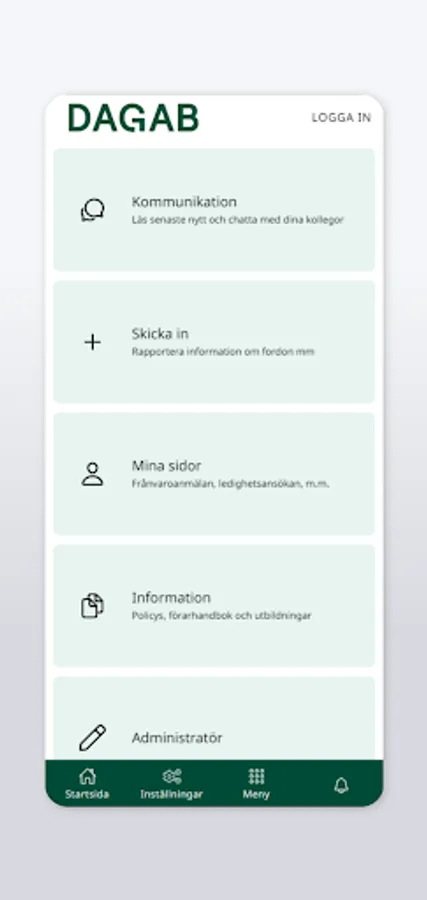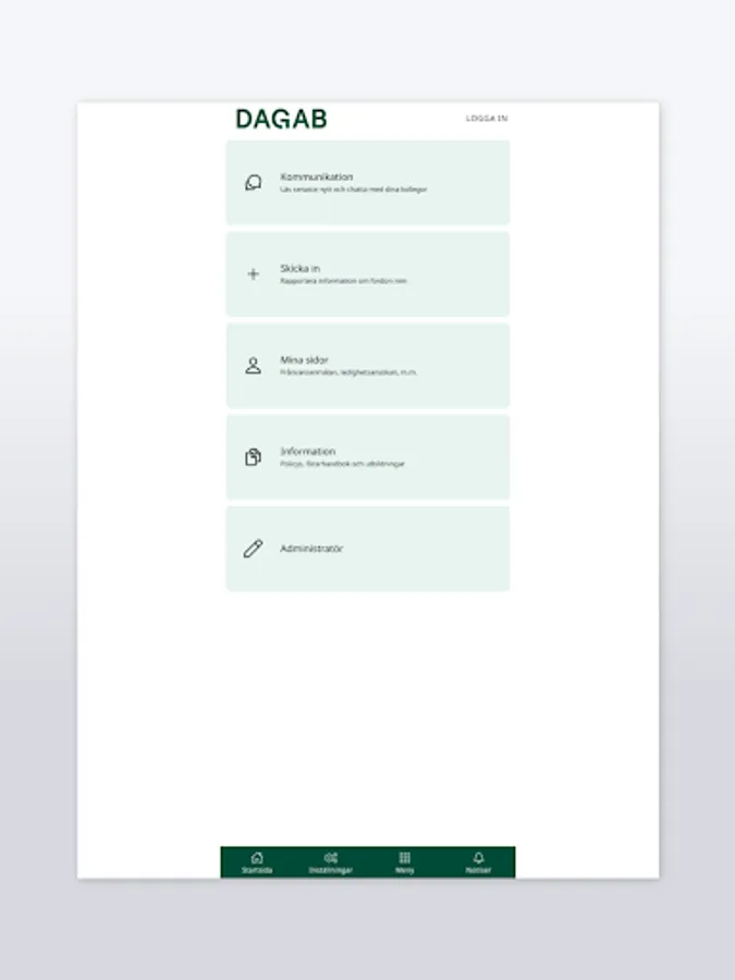 In the app for Dagab, you as an authorized person can take part in a simplified working day through e.g. various digital documents and checklists. You can also take part in information flow, policy documents, contact details and much more.