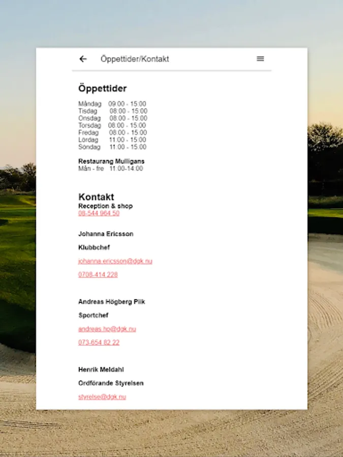 With the app for Djursholms Golfklubb, you as a member can access important information via push notifications. You can continuously follow what is happening at the club via news feeds, book time for golf, read more about our courses, take part in information from our various activities and much more.