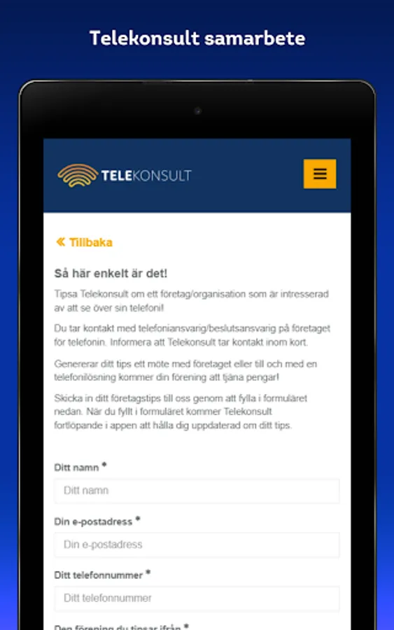 As a market-leading provider of telephone solutions, we at Telekonsult work to offer companies the best solution when it comes to business telephony. Our app for collaboration is for associations to be able to tell us about new customers and at the same time make money. In exchange for and as a thank you for a successful tip, the association receives money from us.