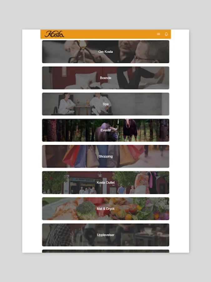 Kosta today offers a variety of experiences and with the help of the app you can easily find all the information you need. In our app, you will find those who are visiting or planning to visit us in Kosta information about the different experiences Kosta offers, everything from shopping and events to glassblowing at Kosta Glascenter and safaris in Kosta Safari Park. With the help of the map function in the app, you can easily see where in the area you are and find and read more about our different places to visit. In the app you will also find information about our various accommodations and spas. You can easily contact us or book directly via the app.