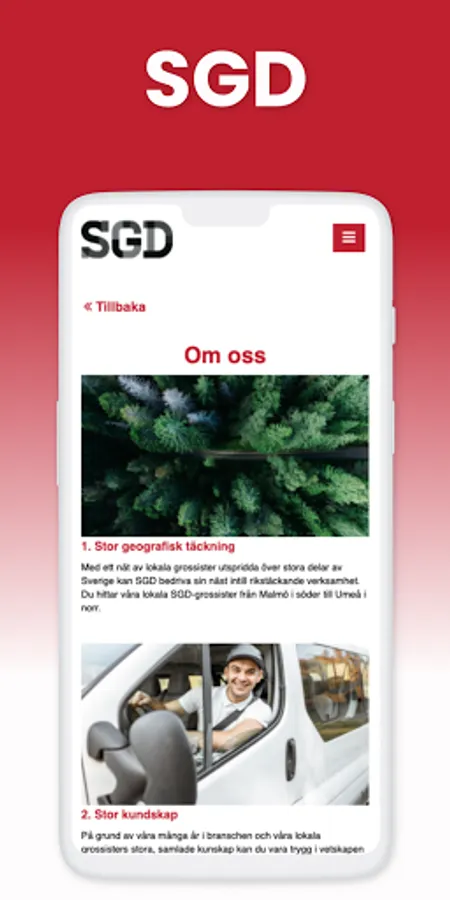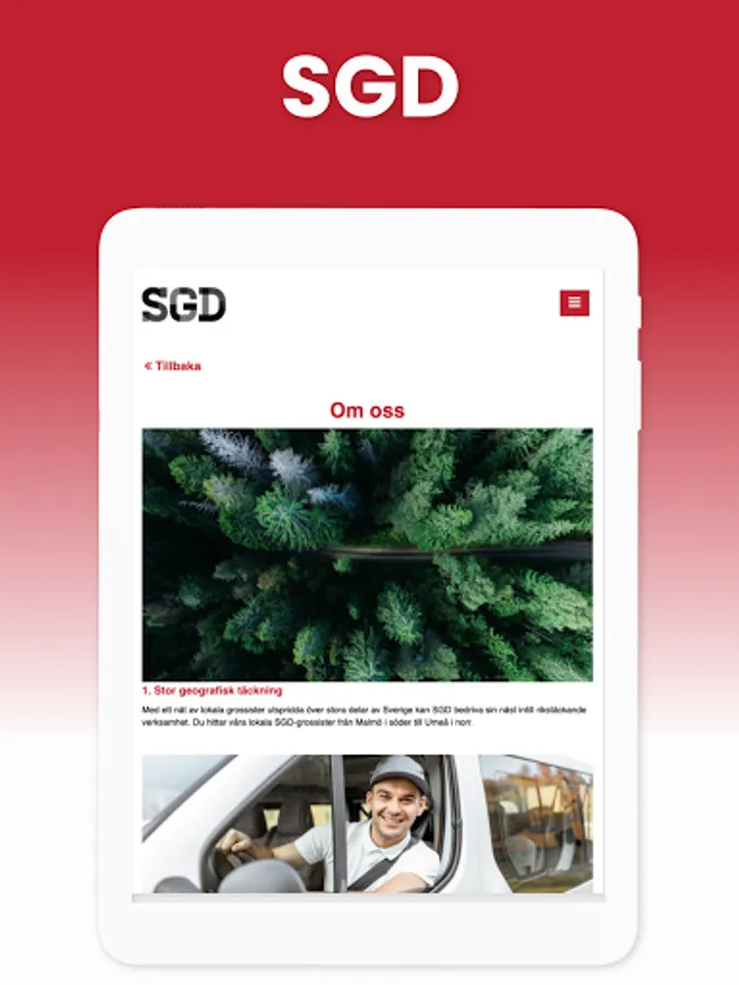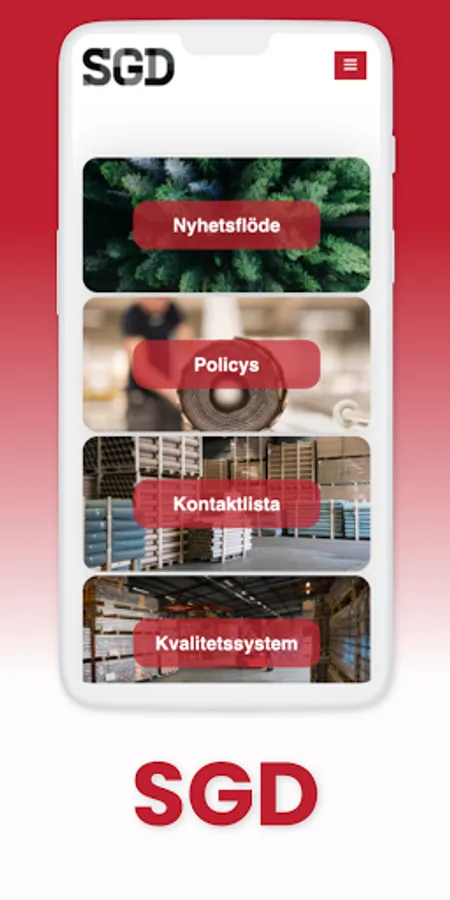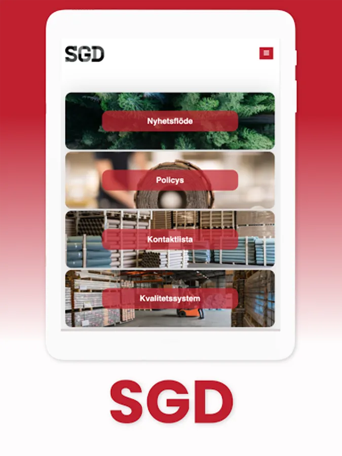 I SGD:s app presenterar vi verksamheten med våra grossister för externa intressenter. Här kan du komma åt vår personalhandbok, policydokument, checklistor och kontaktuppgifter. Även möjligheten att signera olika sorters rapporter och viktiga dokument. Allt för att underlätta din arbetsdag och ge dig möjligheten att arbeta smartare och inte hårdare.