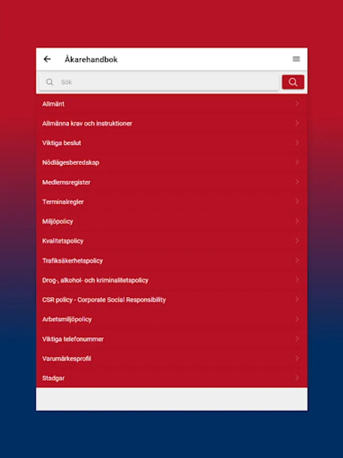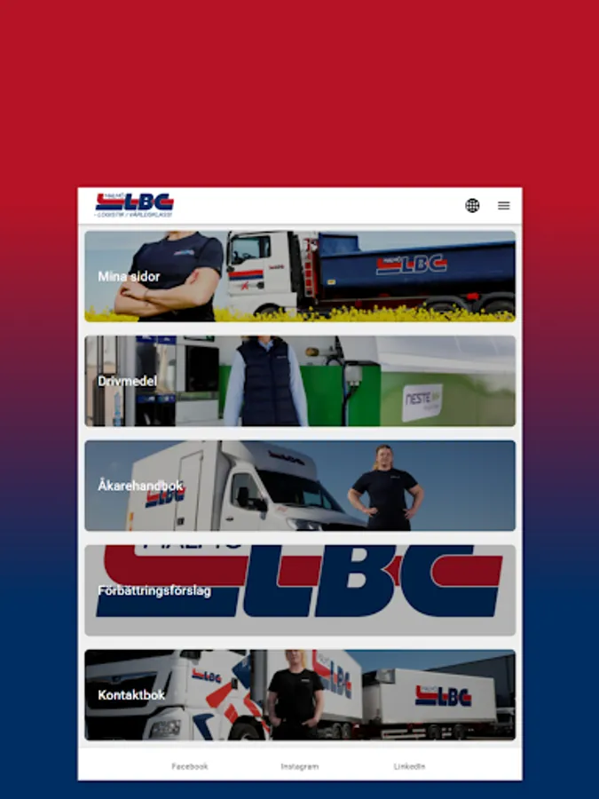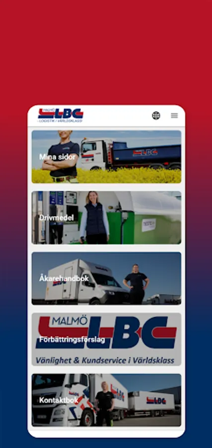 Malmö LBC's app is used as a tool for affiliated transport companies and partners to quickly and easily access information needed in daily work. The app contains, for example, the driver's manual and fuel information, as well as the opportunity to submit suggestions for improvement. Through the app, you can also get access to contact information and the latest news from the business.