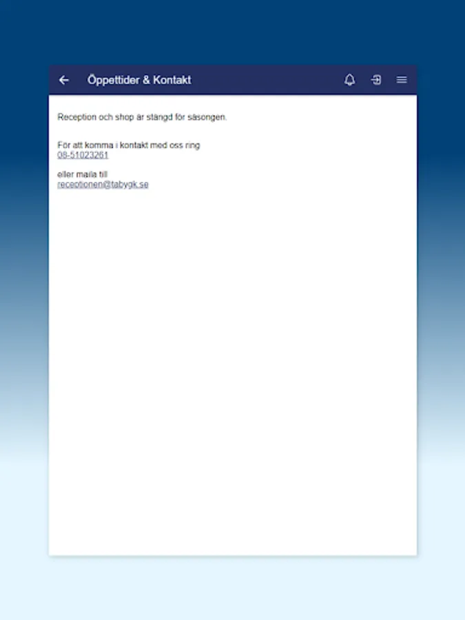 With the app for Täby Golf Club, you as a member can access important information via push notifications. You can follow what is happening at the club via news feeds, make an appointment for golf, read more about our courses, take part in information about our golf academy and much more.