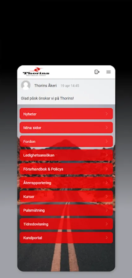 In Thorins Åkeri's app, you as an authorized person can take part in a simplified working day through, among other things. various digital documents and checklists. You can also access information flow, policy documents, contact information and much more. As a customer, you can also send in a transport order, read more about us and submit an expression of interest to work with us.