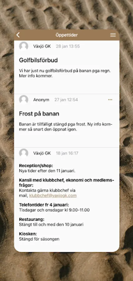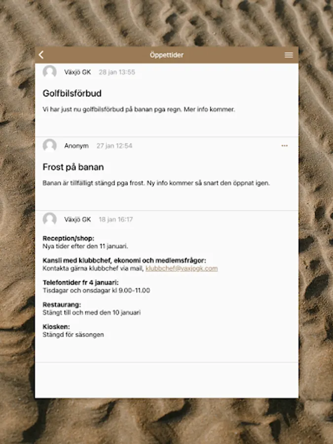 Med appen för Växjö GK kan du som medlem få tillgång till viktig information via pushnotiser. Du kan följa vad som händer på klubben via nyhetsflöden, boka tid för golf, läsa mer om våra banor, ta del av information från vår shop och mycket mer.