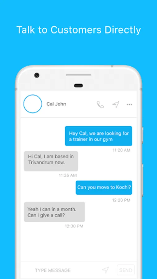 Search for people and businesses around you to engage with them. Communication with businesses can be initiated without permission but for people, a layer of permission is added to protect their privacy. Organizations need to request a person to initiate contact and can message only when the person accepts it.