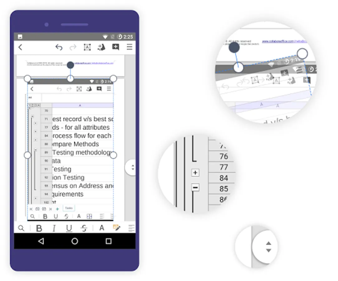 Collabora Office for Android uses the same engine as LibreOffice for Windows, Mac, and Linux. This, combined with a new front-end based on Collabora Online, reads and saves documents similarly to LibreOffice desktop.