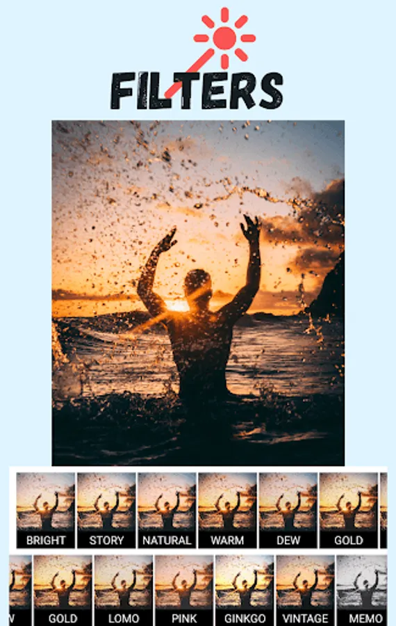 After editing pics, design your photo-collage easily. Dozens of templates and picture layout available to make a creative meme. Put your pics into grids or romantic hearts, image grids are so useful. Beautiful photo grid and photo layouts suit all tastes.