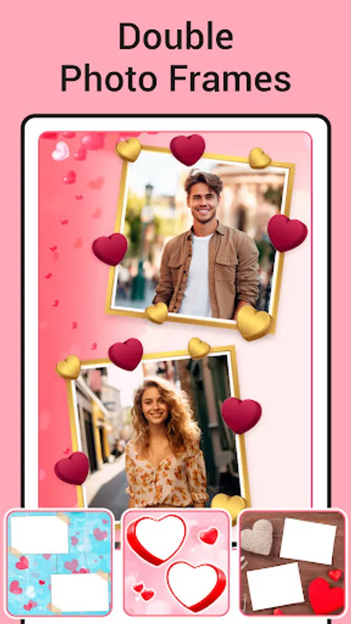 Use this love frame photo collage maker and photo editor app. Edit your photos, add text, stickers and emoji. Save your creations and shares with whomever you want.