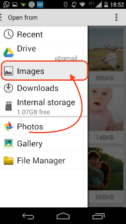 * If it does not work load photo gallery pictures as shown in picture 4, from documents.