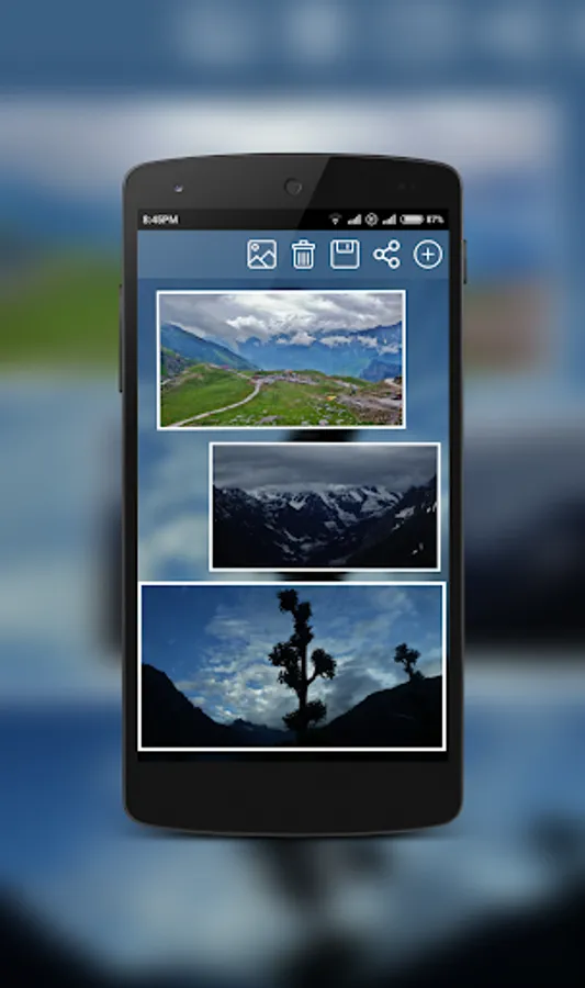 BlurMix is for creating beautiful collages over a blurred background. You can easily mix different photos and create an amazing collage with them. The images can be easily dragged, scaled, overlapped and translated. Delete option is also provided in case you select an unnecessary image.