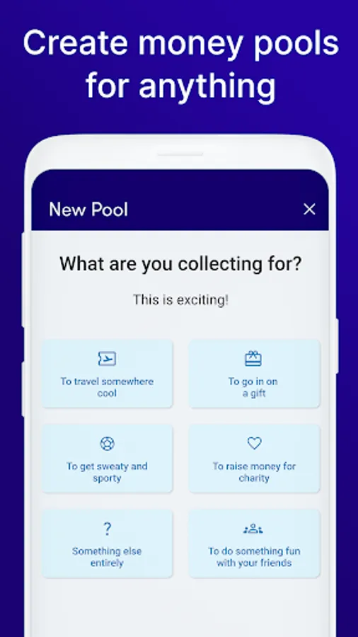 Sign up for free, create a money pool and begin collecting money from your friends, family or coworkers in less than 60 seconds.