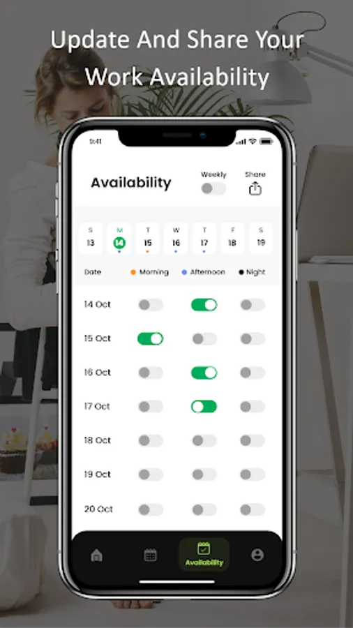 Toggle when you can work and select ‘share’.