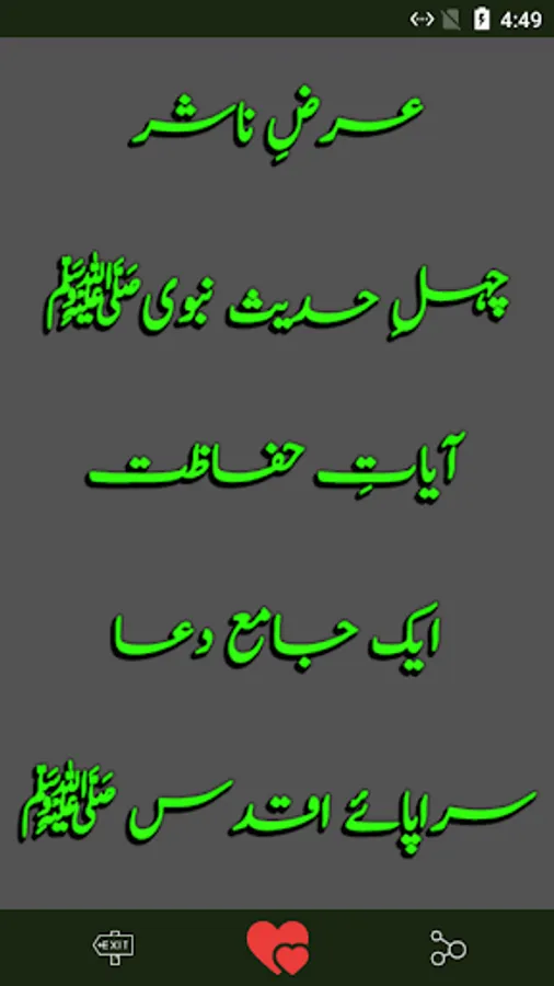 This is a manual of the famous 40 Durood Salat and Salam litany. The 40 prayers have been compiled from the hadiths.