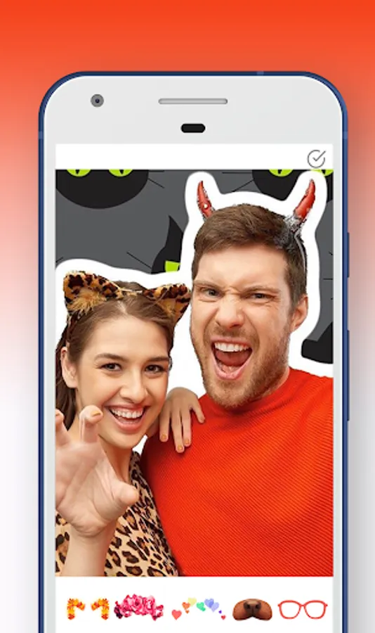 heart crow funny stickers are simple to add: Take a pic or choose one from the gallery, then select your favorite heart crown/cat stickers or emoticons/flowers crown, place them in your funny photo & done.