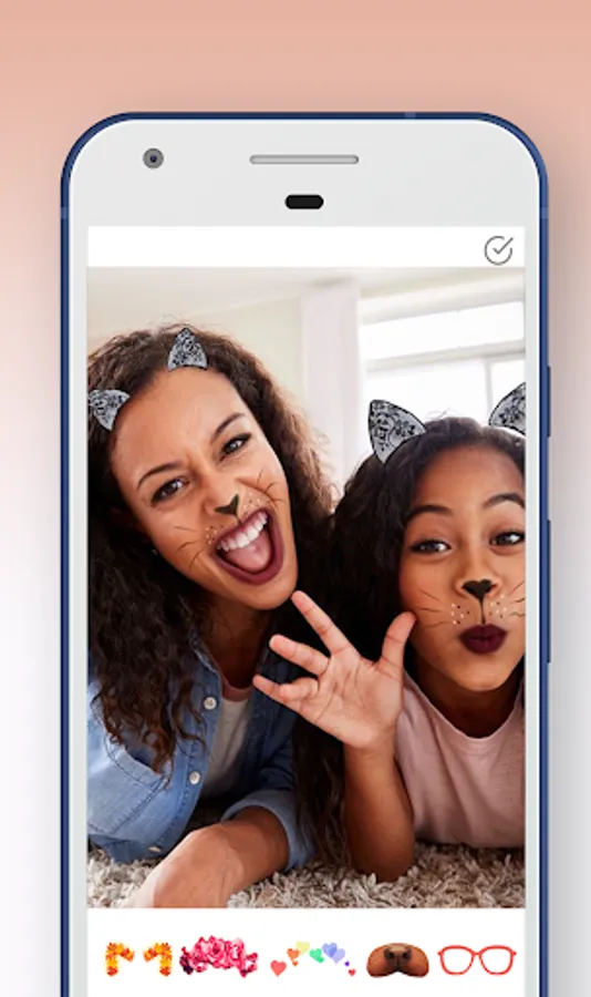 You can add bunny funny stickers for Selfie photo: Heart Crown, cute stickers, cat stickers, Doggy Face, snappy photo, Coachella, make up editor, and emoticons.
