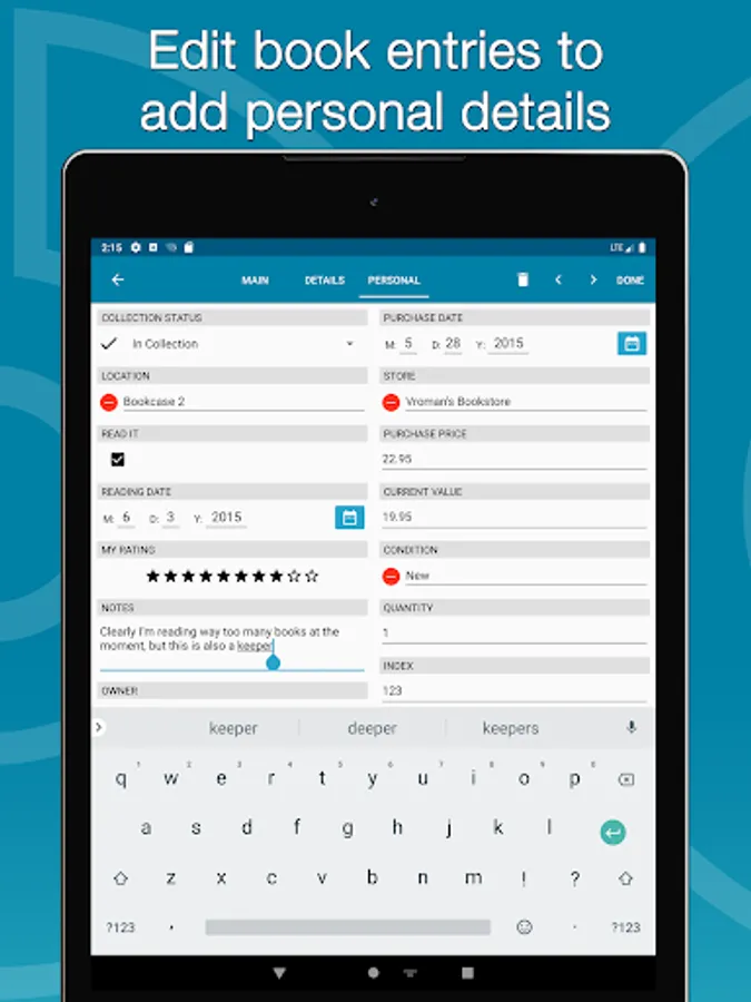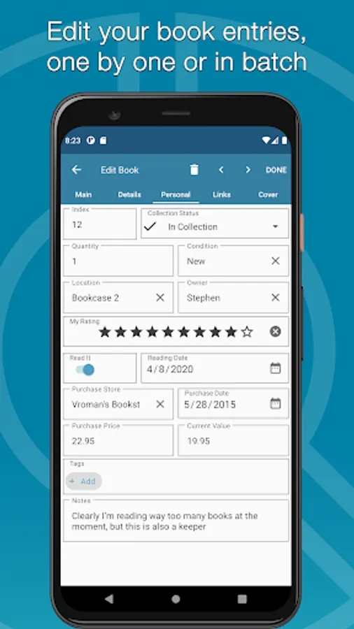 * Edit your book entries to add personal info