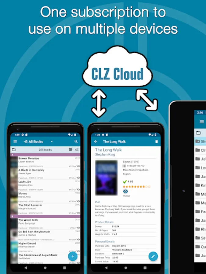 * usage of this book organizer app on multiple phones and tablets