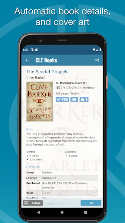 Easily keep track of your books. Automatic book details and cover images, just scan ISBN barcodes with your camera!