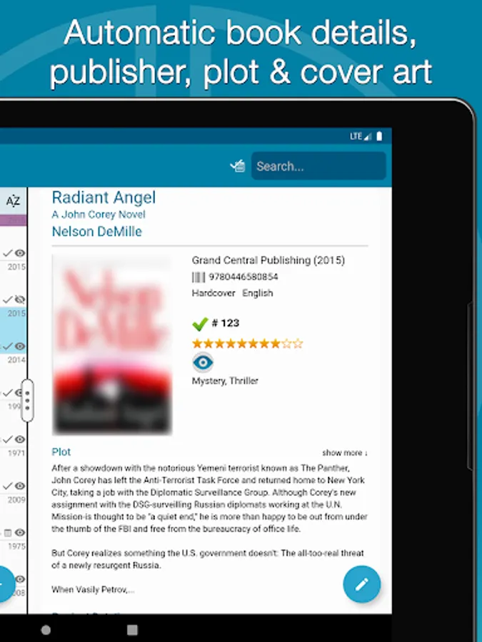 Automatically download cover images and full book details, like author, title, publisher, publication date, plot, genres, subjects, etc..