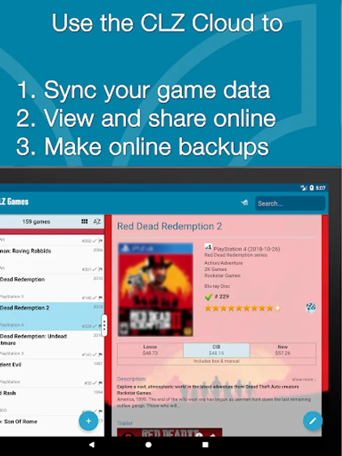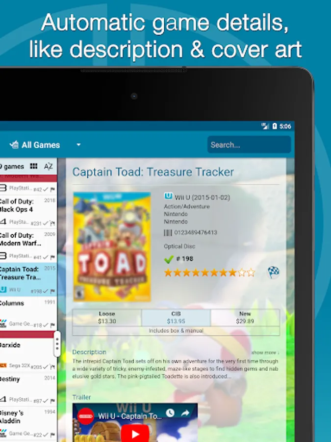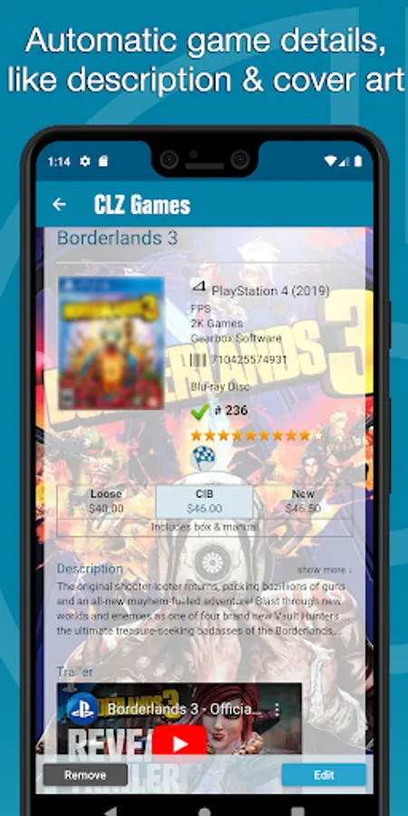 Our CLZ Core will automatically give you cover art and full games details, like release dates, publisher, developer, game description, trailer videos, etc..